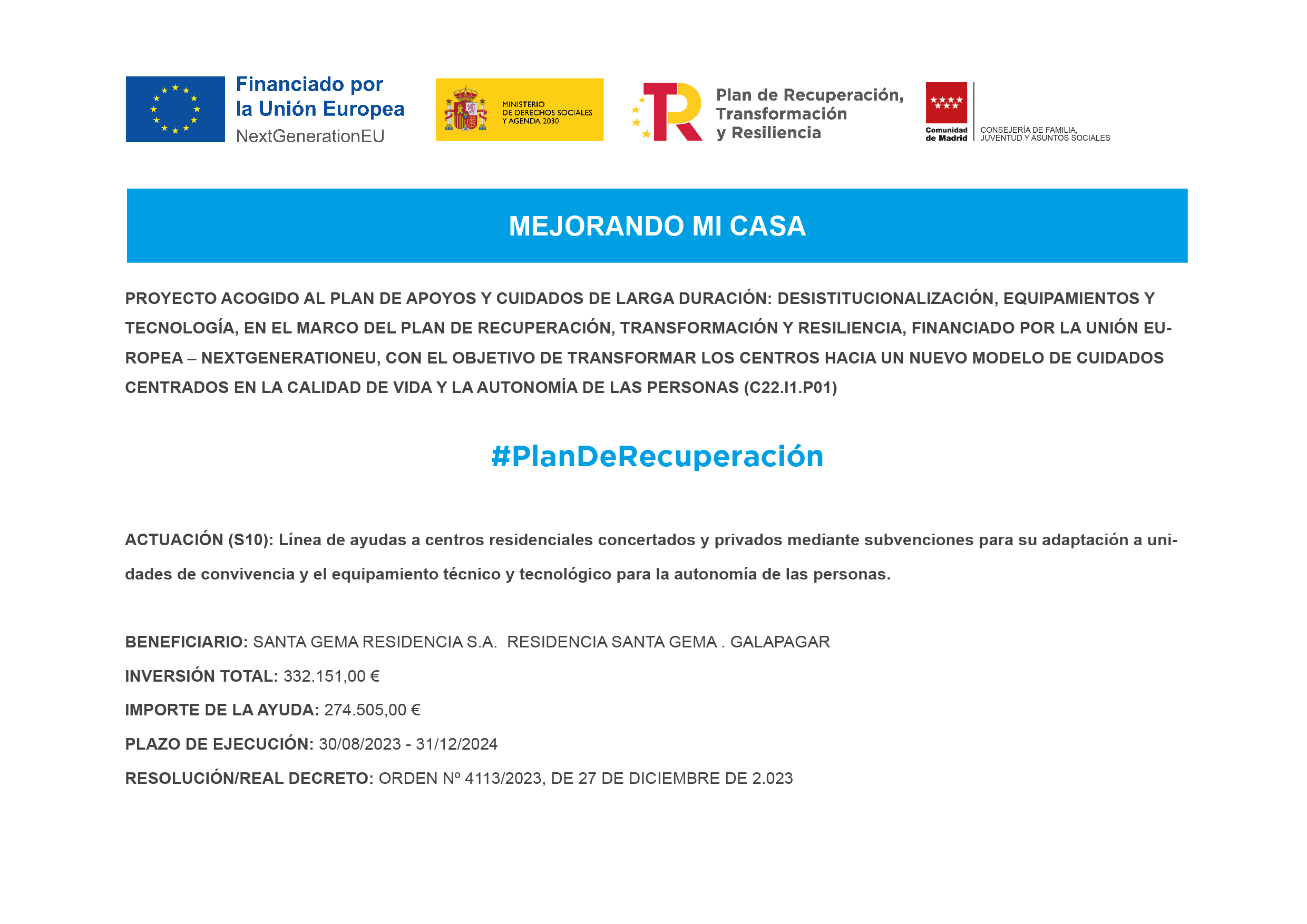 La Residencia Santa Gema forma parte del Grupo Santa Gema, una red de centros dedicados al cuidado y acompañamiento de personas mayores en la Comunidad de Madrid.